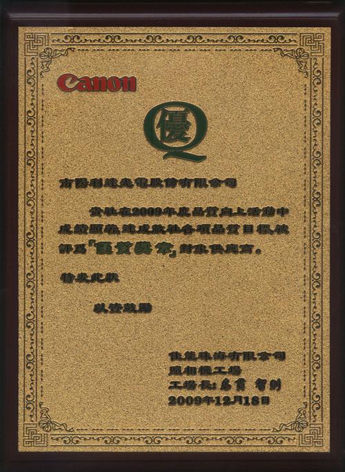 | ??????? 12月18日,公司在佳能的供應(yīng)商“優(yōu)質(zhì)獎(jiǎng)?wù)隆北碚脙x式上受到表彰,并由佳能島貫工廠長(zhǎng)頒發(fā)了優(yōu)質(zhì)獎(jiǎng)?wù)伦C書。 |