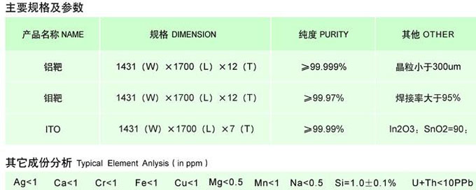 TFT-LCD光伏產業(yè)用大尺寸靶材