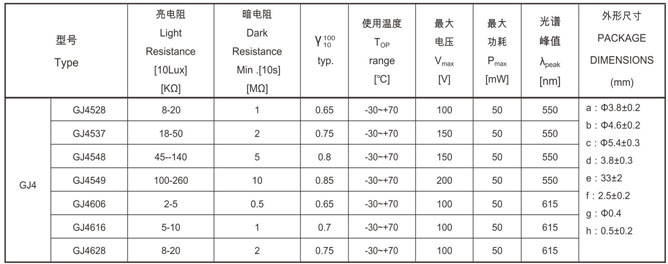 金屬殼封裝型光敏電阻系列 Hermetic Package Photocells Series