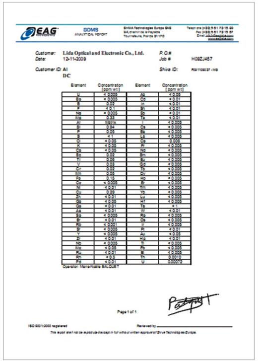 | AI | 99.9995% | φ215×500mm | 2.7g/cm3 | 660℃ |